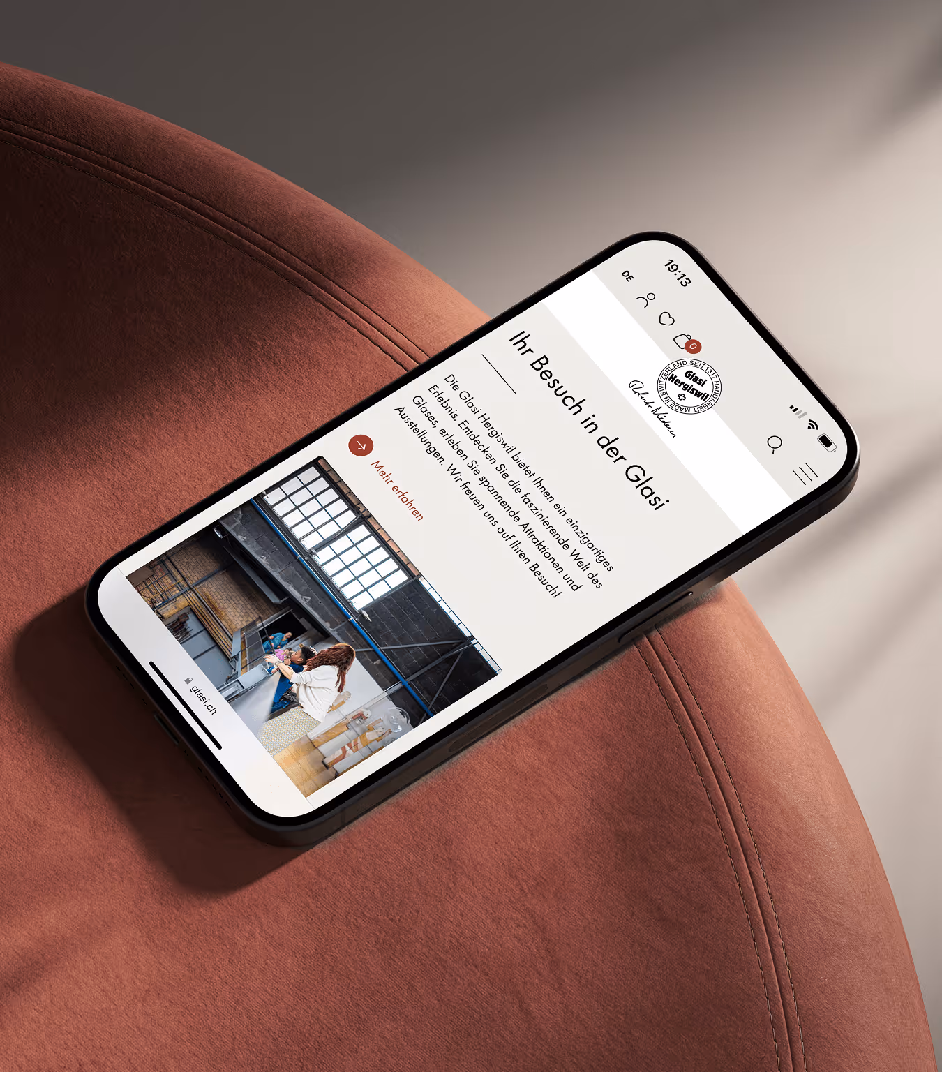 Der gesamte Webauftritt der Glasi Hergiswil sollte neu gedacht werden – von Konzept und Screendesign bis zur Entwicklung der Website inklusive Webshop. Parallel dazu wurden interne Systeme modernisiert. Ziel: eine nahtlose Anbindung von ERP, Kassen und Gutscheinen. Mit maximaler Automatisierung zum optimierten Bestellprozess.